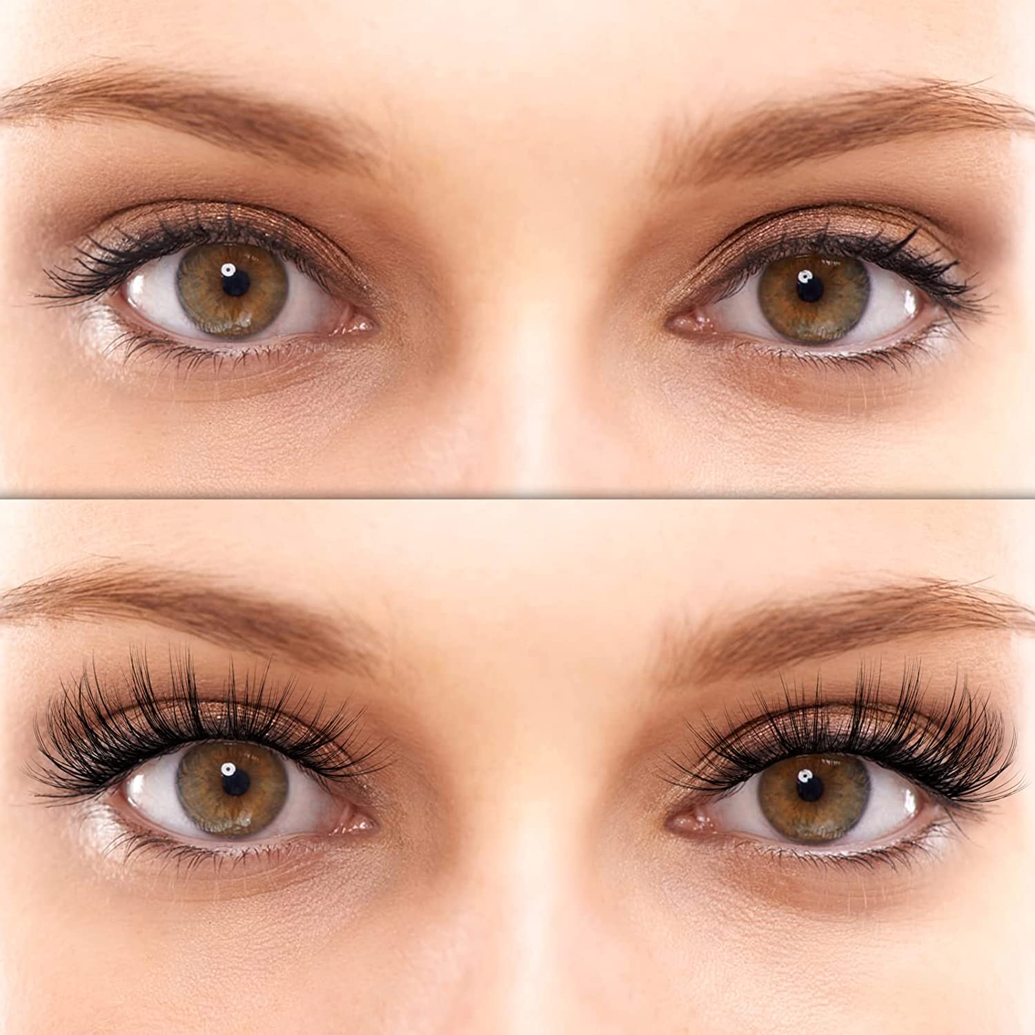 Apply the mascara wand cluster lash glue to your natural lashes and wait about 30 seconds.Gently take lashes off the strip by grab them at the root. Then apply the cluster lashes underneath your natural eyelashes, away 2-3mm from your eyelid! Finally, star your new day with your new eyelash!